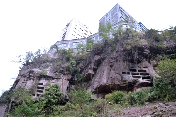 上图是南宾古镇上崖壁龙河崖棺