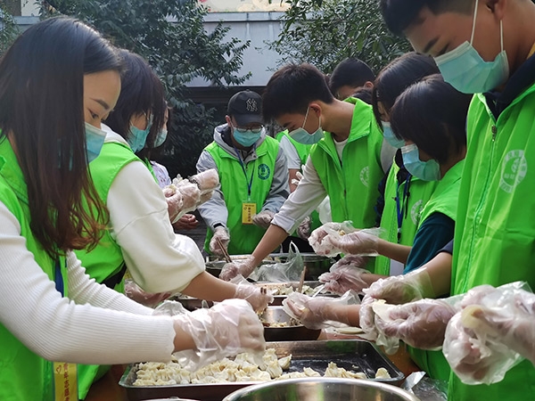 活动中,社工和志愿者为老人们带了文化营养之读书会,重庆商务学校15名青年志愿者则带来了精彩的文艺表演。随后,社工和志愿者现场为老人们包上了饺子,大家自由组合、分工协作,有的拌馅,有的包饺子,不一会儿,一排排漂亮的饺子便呈现在眼前。志愿者将包好的饺子放入沸腾的开水中,热腾腾的饺子随即出锅,老人们品尝着饺子,吃在嘴里,美在心上。