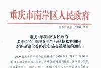 通告全文如下:2020重庆女子半程马拉松赛将于2020年11月8日08:00至11:30南岸区南滨路举行。为确保活动顺利进行,保障活动期间道路交通安全、畅通、有序,根据《中华人民共和国道路交通安全法》及相关法律规定,公安机关交通管理部门决定在活动期间对马拉松赛沿线道路分时段、路段实施交通限制。