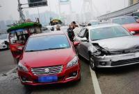 事发当日,重庆市公安局九龙坡区分局交巡警支队谢家湾大队接到群众报警,称鹅公岩大桥发生交通事故,接警后,民警急忙驱车前往,在现场,民警发现事故属于四车追尾,四车不同程度受损,其中一位三轮车驾驶员头部受伤,通过现场勘查、询问当事人、调取附近监控,民警判定,最后面一辆红色小车驾驶员李某承担事故全部责任。