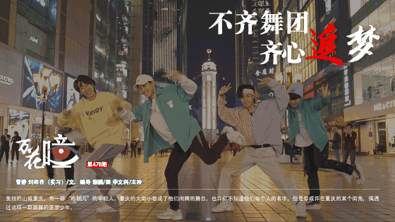 华龙网-新重庆客户端11月27日6时讯(曾静 刘胡杏(实习)/文 谢鹏/图 李文科/主持)美丽的山城重庆,有一群“咋翻儿”的年轻人。重庆的大街小巷成了他们闹腾的舞台,也许你不知道他们每个人的名字,但是你或许在重庆的某个街角,偶遇过这样一群跳舞的逐梦少年。