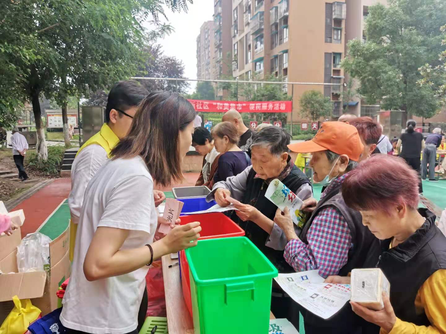 活动现场,生活垃圾分类志愿者、党员、分类指导员发放生活垃圾分类宣传单,向居民宣讲垃圾分类知识;生活垃圾分类趣味小游戏,让居民更加深刻地理解到如何进行垃圾分类;有害垃圾的兑换以及垃圾分类有奖投放,用积分奖励机制提高居民参与垃圾分类的积极性。此次活动共发放宣传资料110余份,发放小礼品垃圾袋80余份,参与垃圾分类小游戏的居民130余人。