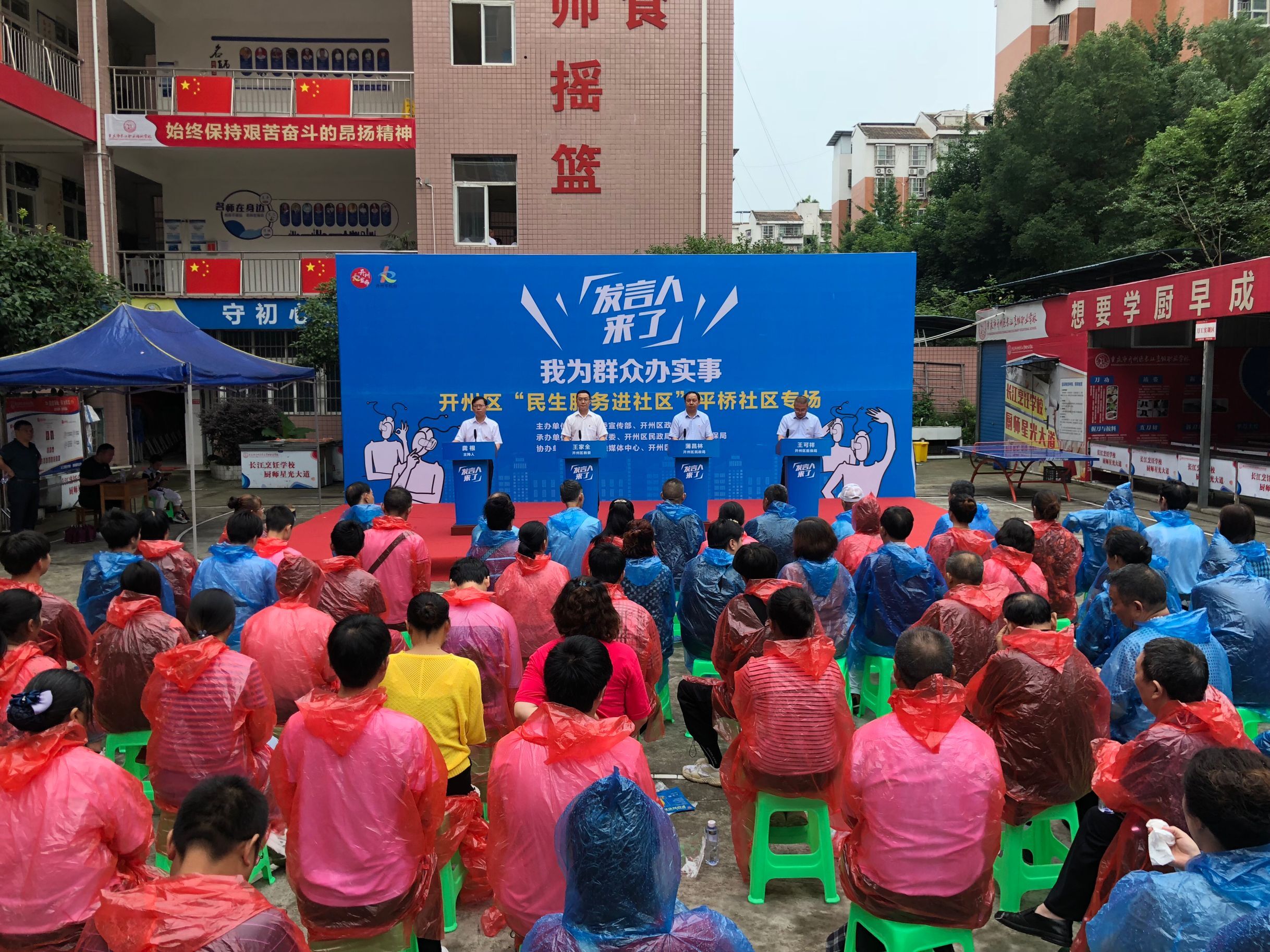 6月29日,“发言人来了——我为群众办实事”开州区“民生服务进社区”新闻发布活动走进云枫街道平桥社区,来自区教委、区民政局、区医保局的发言人出席活动,通过零距离、面对面的对话形式,向广大市民作信息发布和政策解读。