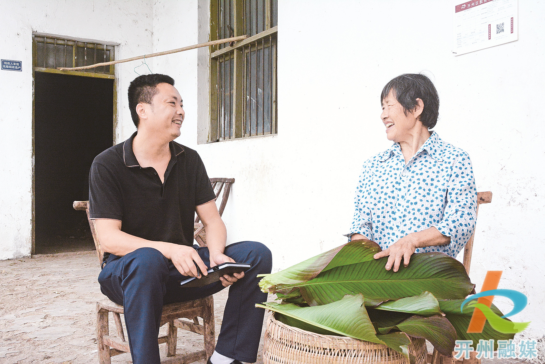 喻海波(左)了解村民对发展李子产业的想法