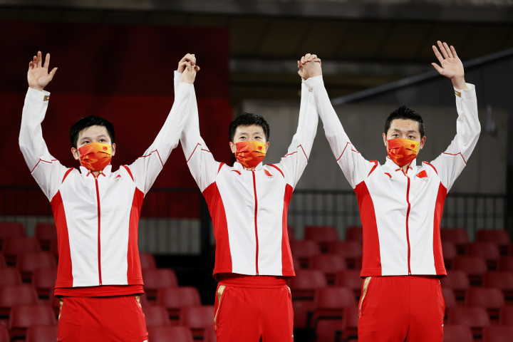 2020东京奥运会,国乒实现男团四连冠。图片来源:视觉中国