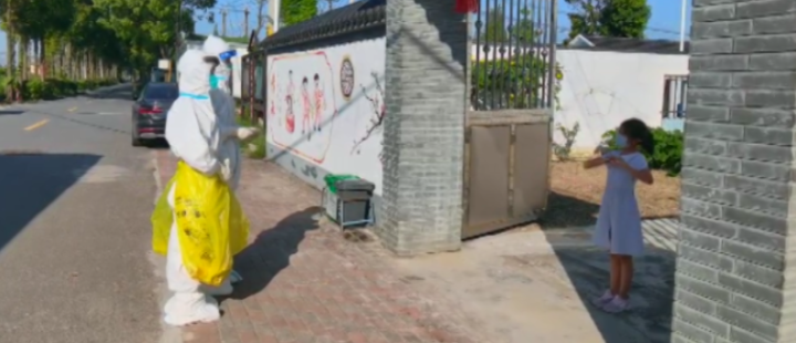 衣颖杰告诉扬子晚报紫牛新闻记者,8月8日上午7点左右,他和搭档何玉雪在杨树湾村上门做核酸采样时碰到了这个小女孩,在采集完核酸后,小女孩把两人叫住表示要跳一支舞蹈送给他们。