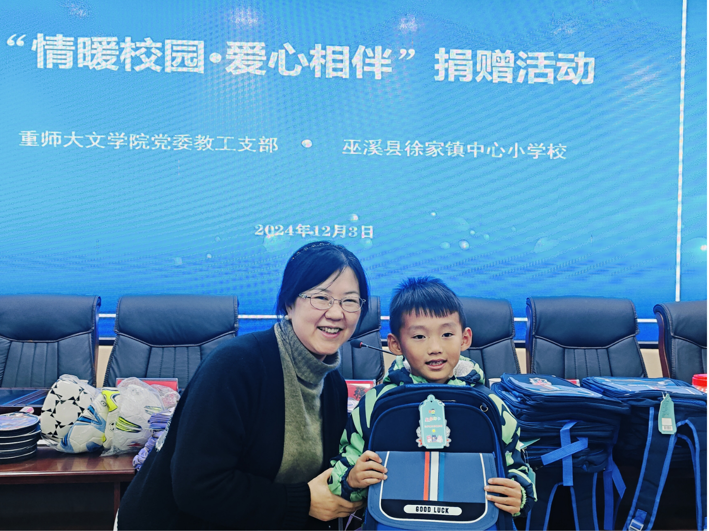 12月3日,重庆师范大学文学院党委教工支部的10余名老师走进徐家镇中心小学和白鹿初级中学,开展“情暖校园 爱心相伴”捐赠活动。