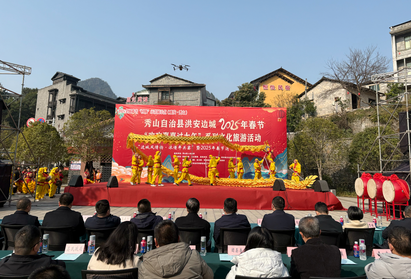 翠翠秀山客户端讯 12月28日,秀山自治县洪安边城2025年春节“欢欢喜喜过大年”系列文化旅游活动—“边城风情韵·浓情年关宴”暨2025年春节消费帮扶活动在洪安镇刘邓广场启动。重庆市商务委二级巡视员张建军,县政府党组成员王栋、董秀义参加启动仪式。