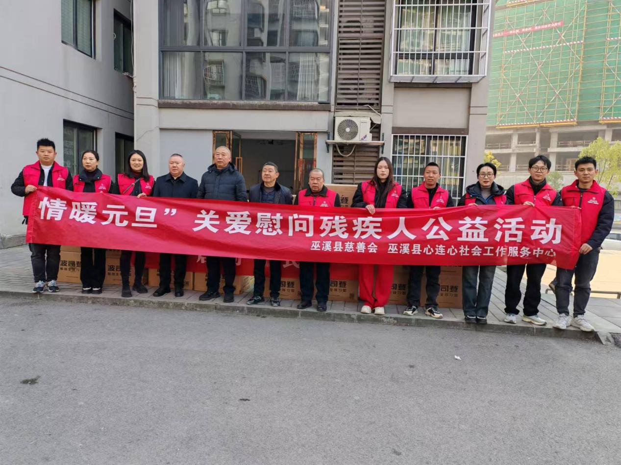 近日,在县委社会工作部、县残联和慈善会指导支持下,县心连心社会工作服务中心开展了 “情暖元旦” 关爱慰问残疾人公益活动,为 60 户残疾人家庭送上节日祝福与关怀。