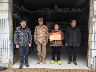 1月9日,峰灵镇武装部、退役军人服务站主要负责人为荣获“四有”优秀士兵李博荣誉家庭送去喜报,与军属共享荣光。