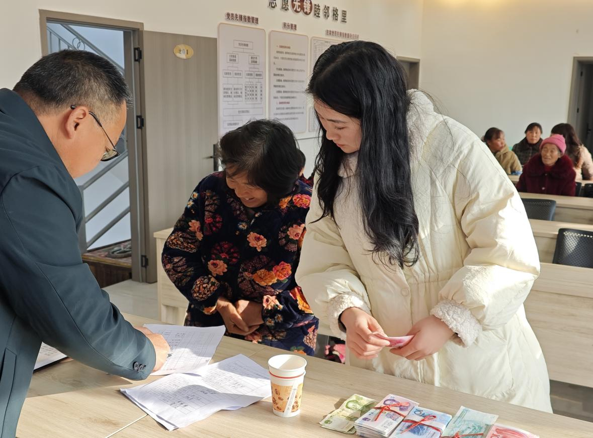 活动现场,村民们在村干部的组织下有序领取工资,共计发放9万余元,惠及90余名务工村民,人均增收近千元。村民们脸上洋溢着幸福的笑容。