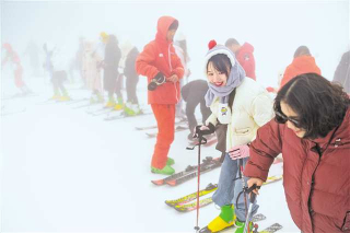 1月14日,南川区金佛山,游客们在体验滑雪。