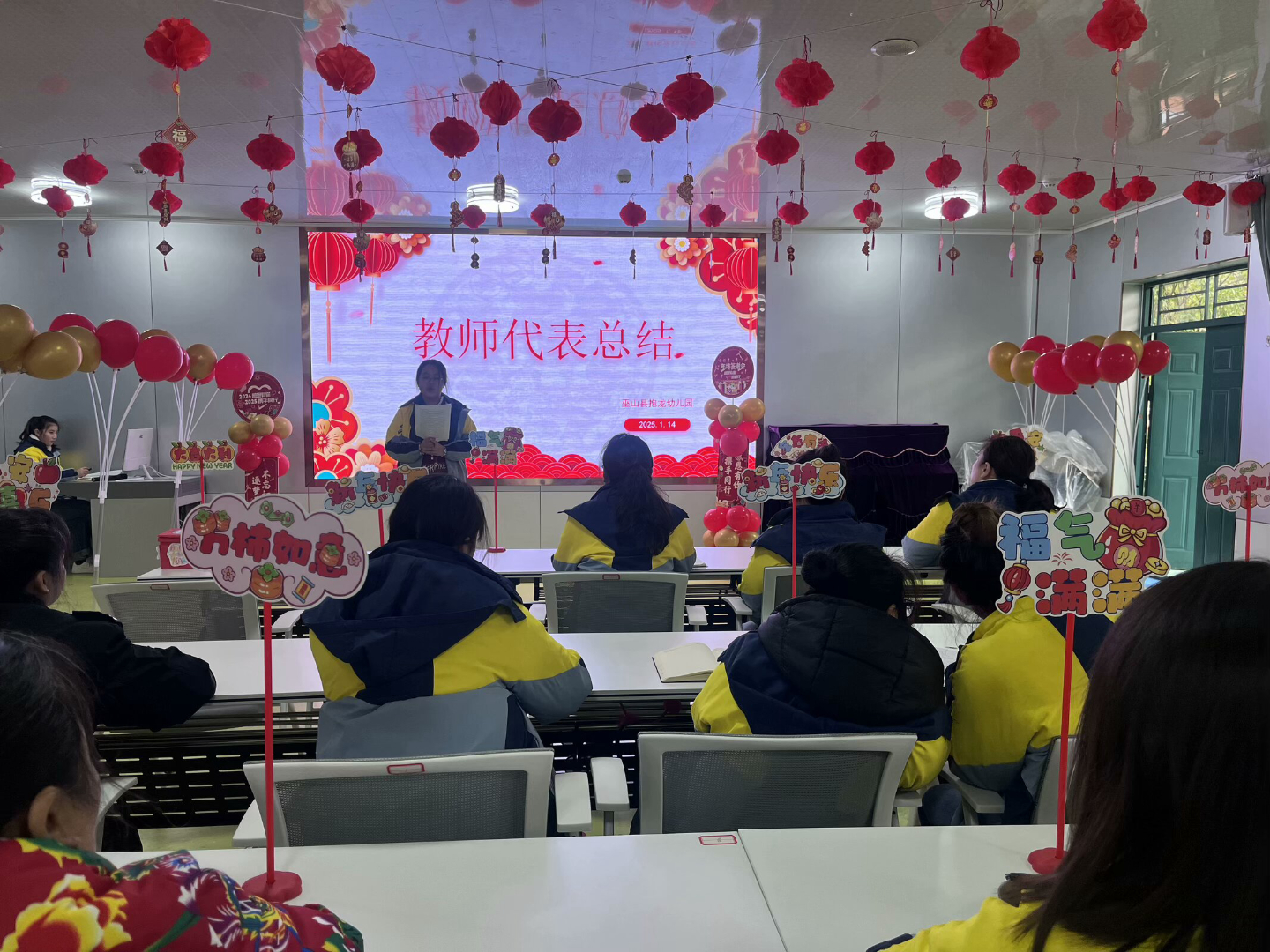 1月14日,抱龙幼儿园召开教职工期末总结会。