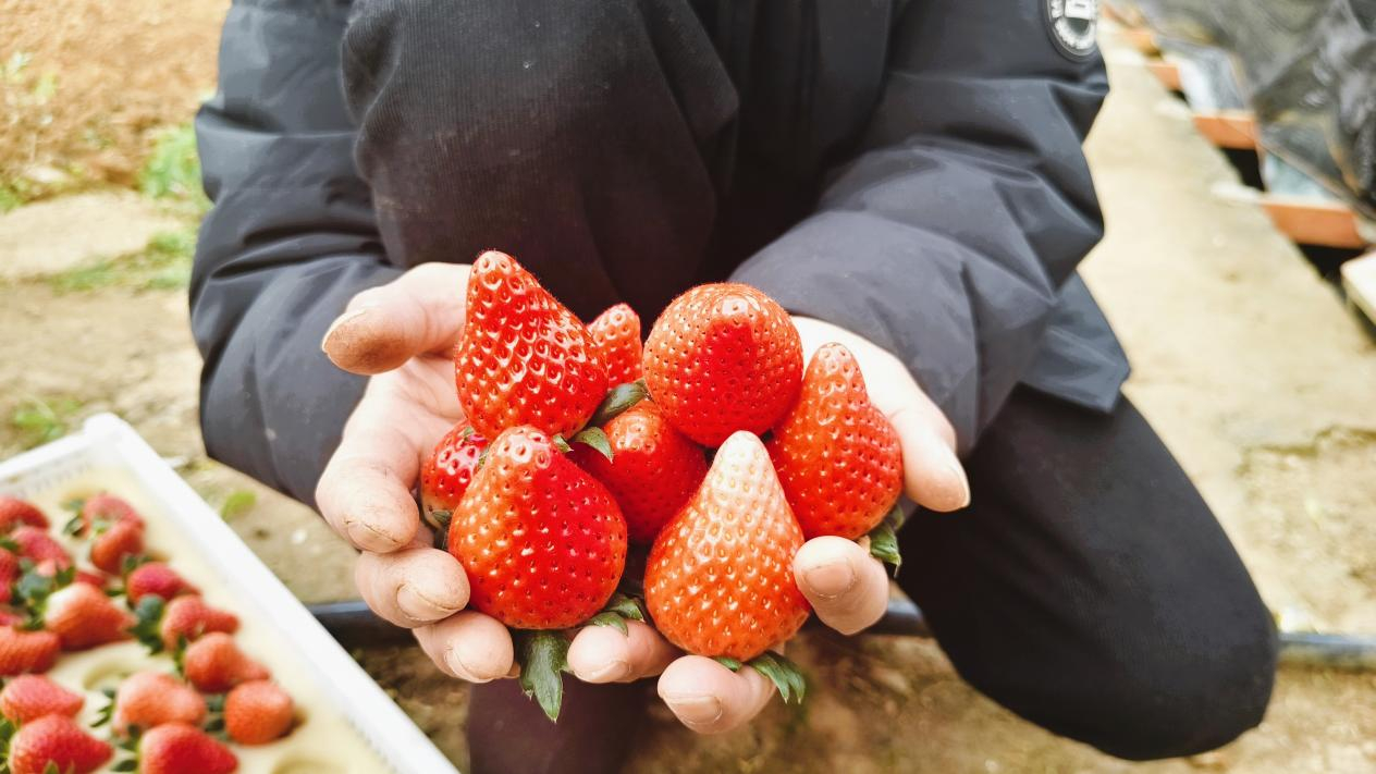 新春将至,大昌镇光明村的草莓园再度迎来丰收季。在这料峭春寒中,红彤彤的草莓宛如一簇簇跃动的火焰,为古镇的寒冬增添了融融暖意。