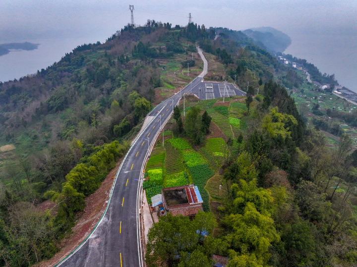 独珠半岛二面江连接道起于县城郭家转盘、止于龚家山,全长2.191公里,路面宽7.5m,配套建设停车场,标准为三级公路,总投资约2450万元。该项目的实施,有效解决了独珠半岛内山脊线公路与山脚公路路网的互联互通,更好匹配了独珠半岛产业发展规划,对促进独珠江村农文旅融合发展,推动忠县城乡互融将发挥重要作用。
