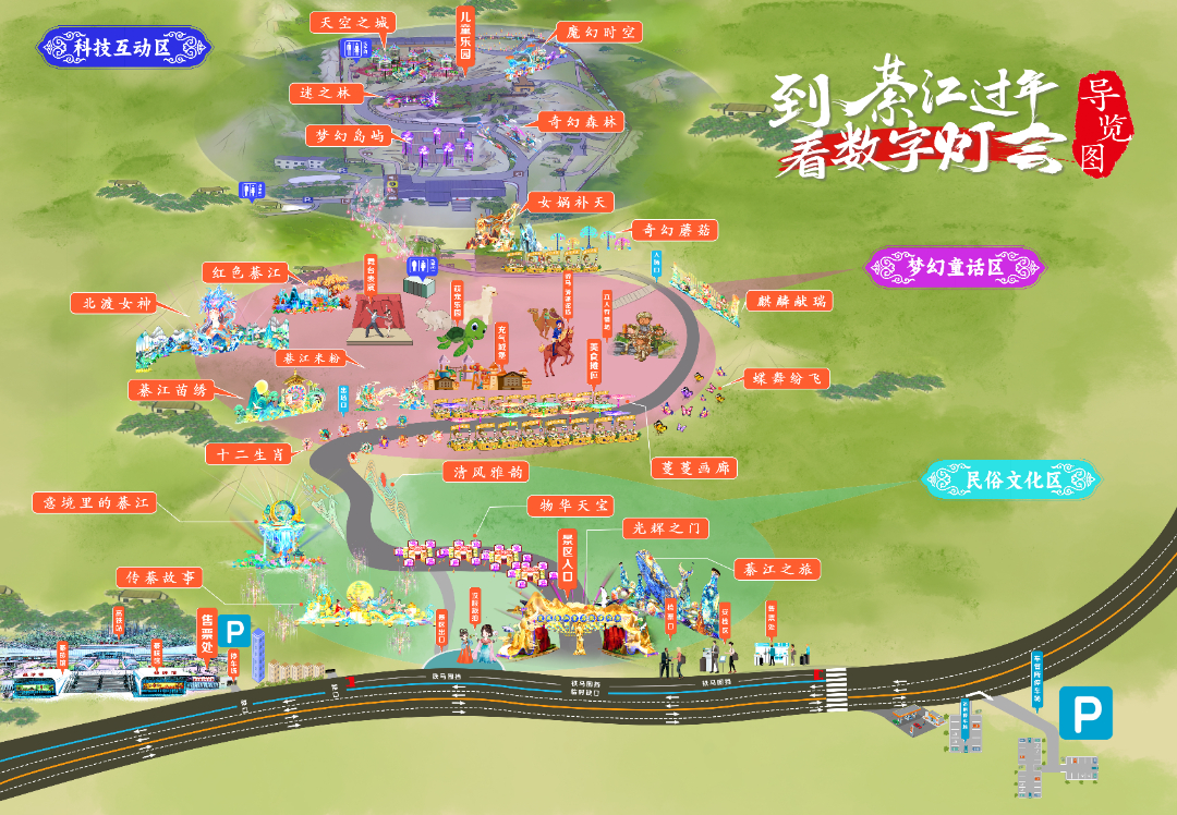 本次数字灯会融入传统文化元素、綦江文化元素、当代时尚元素、科技元素,让观众的观感体验提升。同时数字灯会将节能与环保相结合,灯会所有灯具全部采用 led节能灯,以及的环保材料。