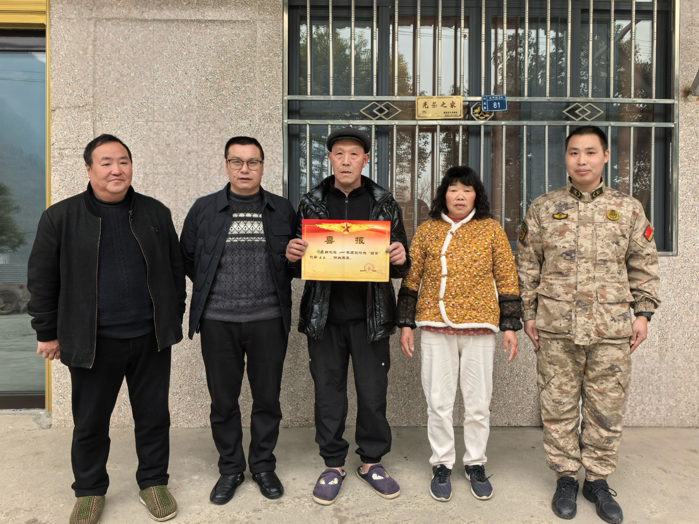 近日,白鹿镇为4名荣获“四有”优秀士兵的军人家庭送上喜报和关怀。