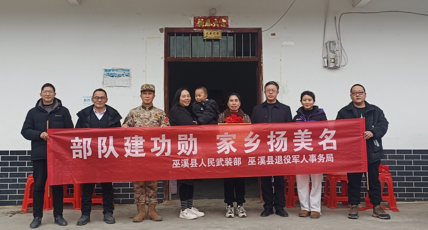 1月22日,县退役军人事务局联合塘坊镇人武部及退役军人服务站,为金龙村现役军人杜忠心荣立三等功送喜报,并致新春祝福。