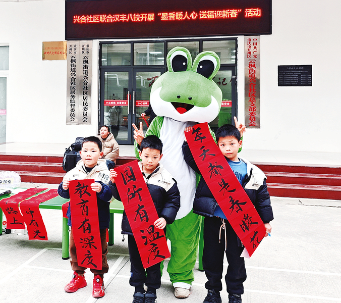 活动现场,开州中学“翰墨书法社”和“DIY制作社”成员为市民书写春联、制作手工艺品,并送上新春祝福;学生会成员组织开展图书义卖活动,为公益事业贡献力量;志愿协会成员主动深入小区、超市,宣传防诈及冬季传染病防治知识;家校社协同育人路径研究工作室的老师们,还为群众现场解答在日常家庭教育中的困惑,有效发挥自身作用服务儿童、青少年健康成长。
