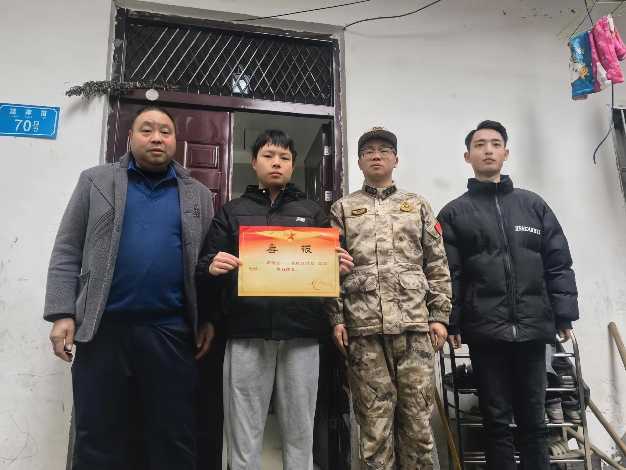 近日,中梁乡武装部部长颜从藩前往2024年度“四有”优秀士兵荣誉获得者王光海的家庭,送上喜报,传递党和政府对军人家属的深切关怀与温暖。