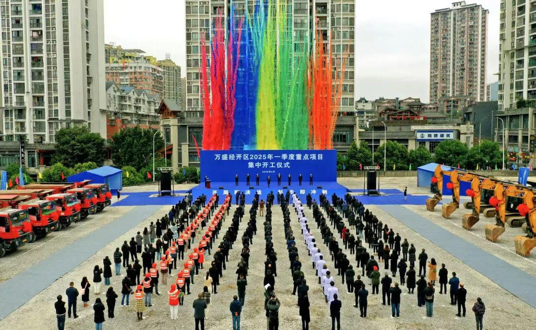 抓重大项目建设,聚焦的是发展,传递的是信心,彰显的是实干。涂山全在致辞中代表党工委、管委会,对重点项目集中开工表示热烈的祝贺。他说,举行2025年一季度重点项目集中开工活动,是万盛深入贯彻落实中央、市委经济工作会议精神和市委新春第一会工作要求的关键举措,是持续扩大有效投资、巩固经济回升向好态势的具体行动,也是奋力实现全区一季度经济“开门红”的重要抓手。全区各级各部门要始终坚定“小区能有大作为”的信心决心,抢抓国家实施更加积极有为的宏观政策窗口期,聚焦“231”现代制造业集群体系,树牢“抓项目就是抓投资,抓投资就是促发展”理念, 以“开局就是决战,起步就是冲刺”的状态,奋力掀起一季度“大抓项目、抓大项目”建设热潮,以项目建设的“进”支撑经济发展的“稳”。希望各项目单位倒排工期、挂图作战,高标准开局、高效率推进、高质量建设,力争项目早竣工、早投产、早达效,努力形成更多实物量,更好发挥投资的关键性作用,确保一季度经济实现“开门红”。
