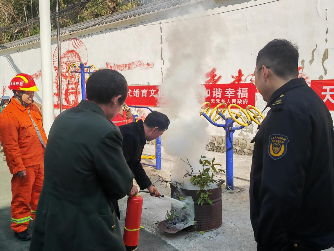 2月27日,天元乡在天元村广场开展消防应急演练,30名村民化身"第一响应人",与乡村应急队伍协同完成火灾扑救、伤员转运等全流程演练,筑牢乡村安全防线。