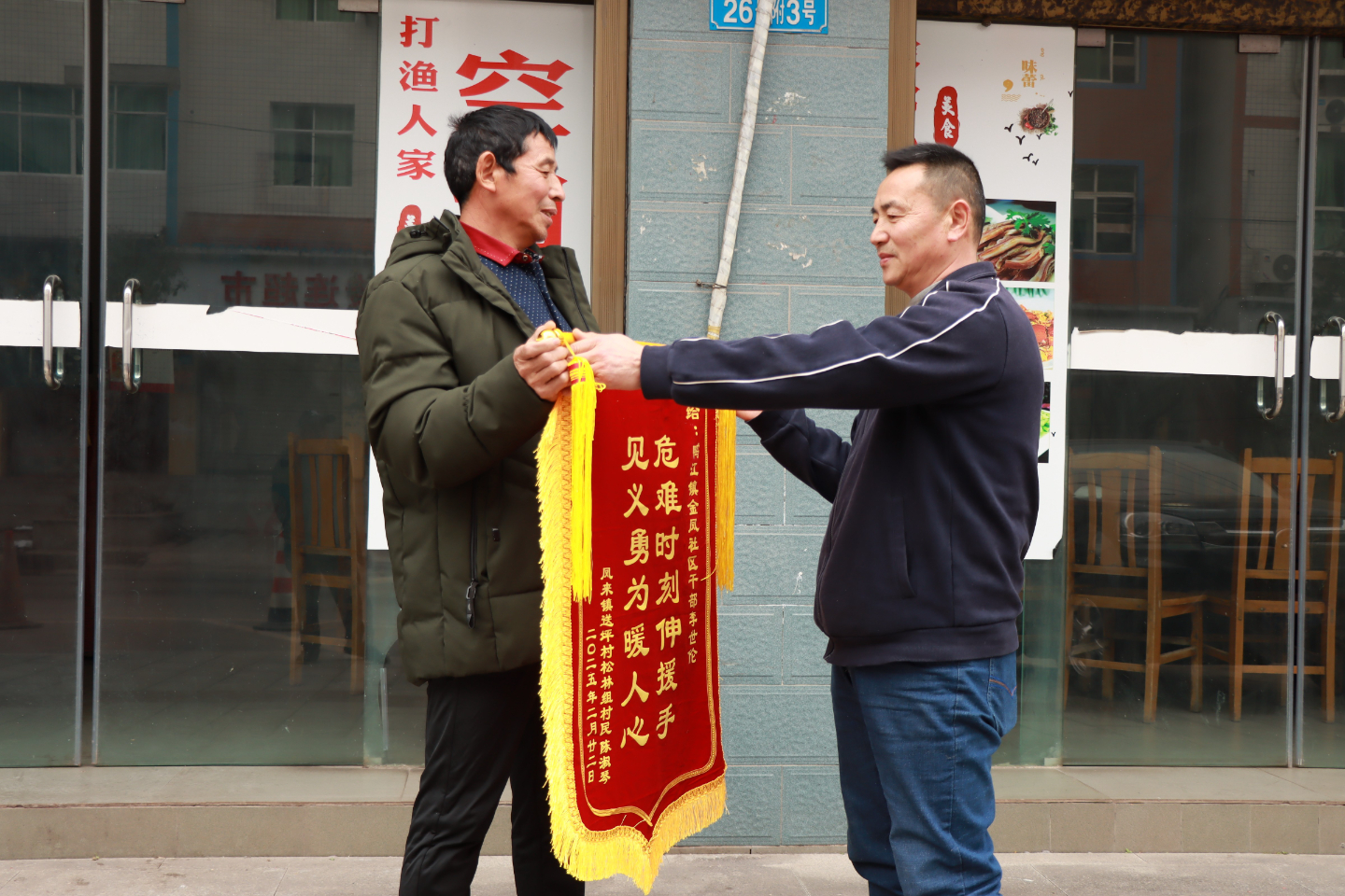 马坤伦紧握李世伦的手,表达感激之情,随后郑重地将手中的锦旗展开,鲜红的锦旗上写着十四个金色大字——“危难时刻伸援手,见义勇为暖人心”。
