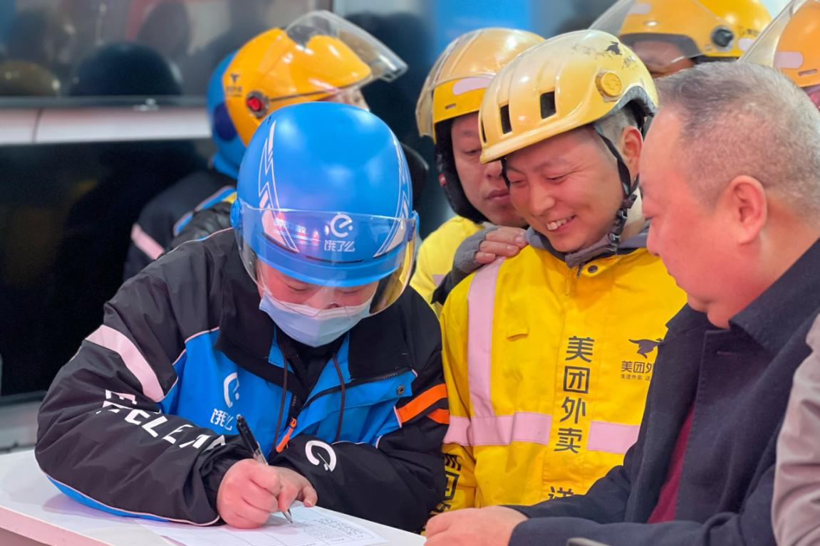 聘任仪式上,街道代表为32名“兼职网格员”发放聘书,并对各位“兼职网格员”提出希望,外卖员、快递员等新就业群体要发挥“门清、人熟、覆盖广”的独特优势,积极投身政策宣传、餐饮安全监督、燃气安全排查等志愿服务活动,争当社情民意“信息员”、基层治理“监督员”、文明风尚的“传递员”,成为基层网格治理的主力军,并带动身边更多的新业态、新就业群体加入到队伍中来。