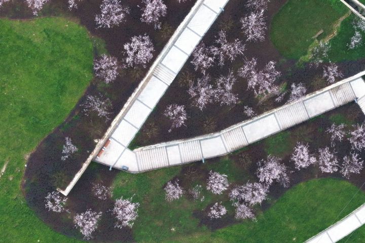 走进忠县香山体育公园,红叶李和美人梅开得正盛,三三两两的市民漫步在绿树繁花之中,尽情享受着初春的幸福时光。