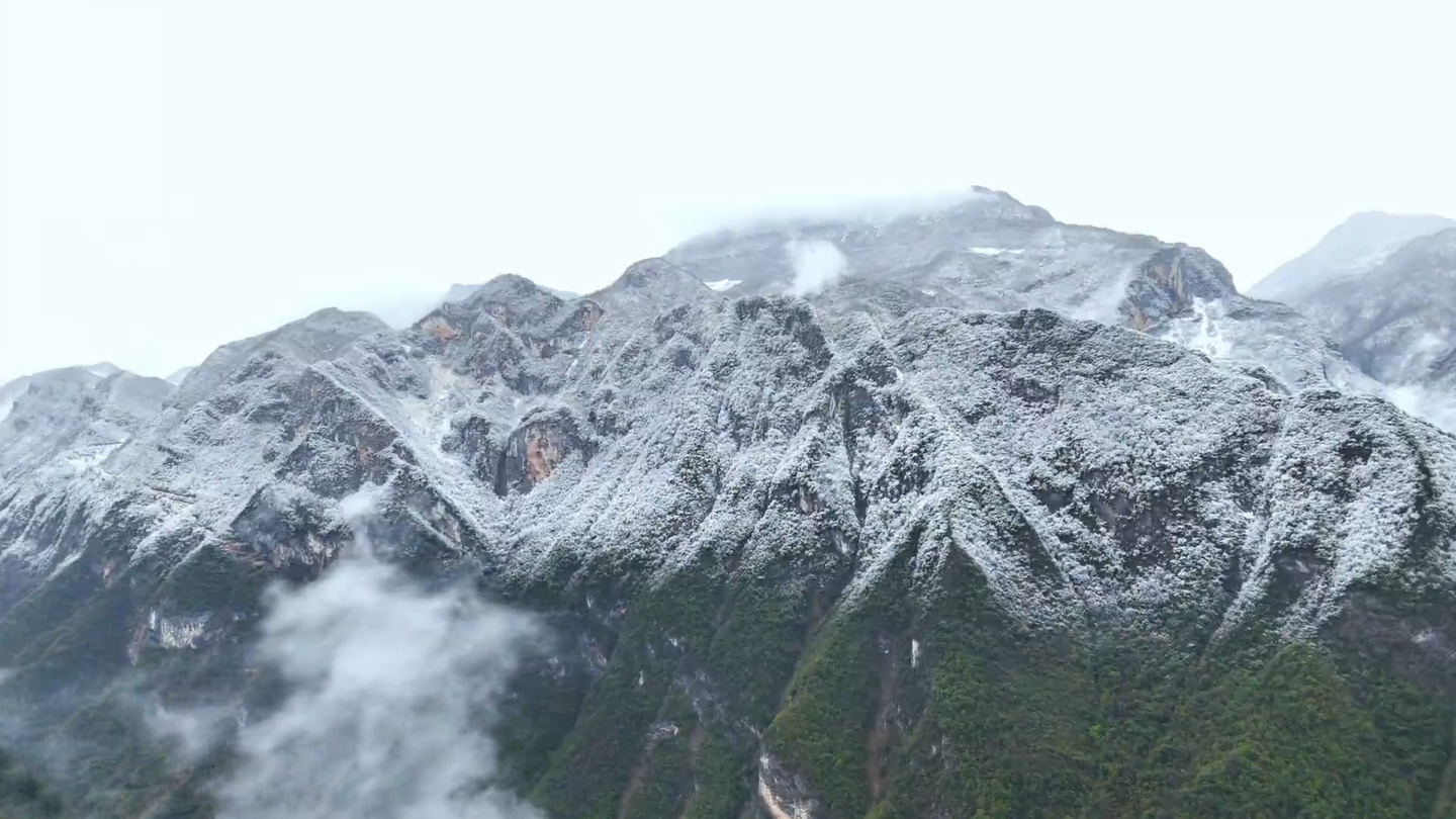 三月的尾声,一场春雪不期而至,将巫溪中梁水库绘成一片纯净的冰雪画卷。无人机镜头下,雪花翩跹而落,群山裹素,冰湖如镜,天地间只余黑白交织的静谧。