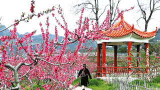走进桃园,漫山遍野的花枝相互交错,朵朵桃花随风摇曳,置身其中,沁人心脾的花香扑面而来,犹如身处陶渊明笔下的“世外桃源”,如诗如画的美景吸引不少游客纷至沓来,感受春色美景。