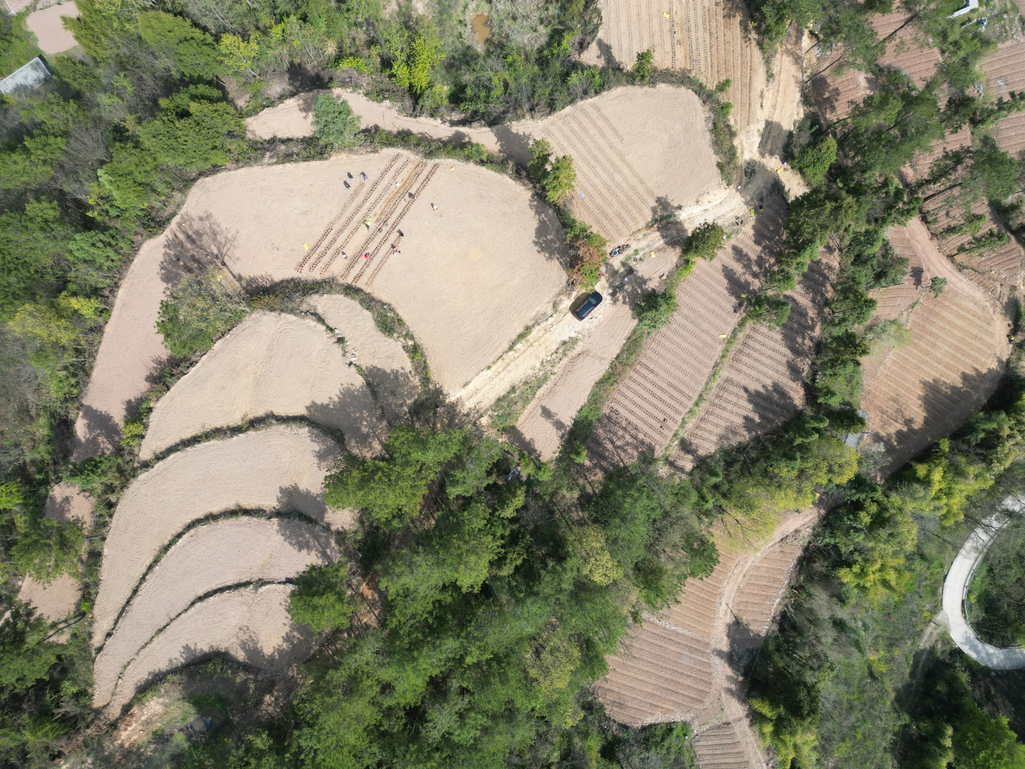 ▲村民在放种芋。记者 董存春/摄