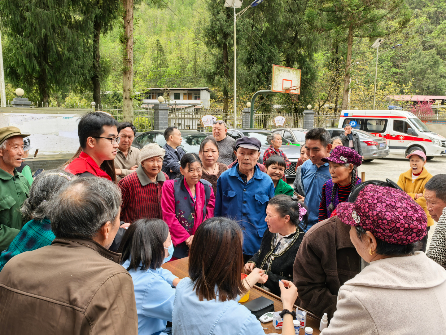 活动现场,县新专联秘书长刘赟、副会长文伯顺带领渝溪医院、颐添园中医医院及单采血浆站20余名医护骨干,为村民提供“一站式”健康服务。活动涵盖血压血糖检测、心电图监测、白内障筛查等基础项目,覆盖全年龄段人群,共筛查出高血压、糖尿病等慢性病疑似病例23例,现场转诊建议率达100%。