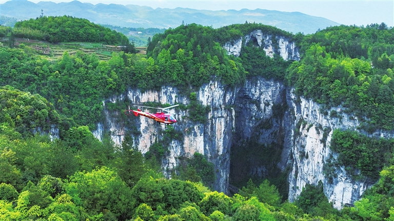 武隆印象客户端讯(记者 阳凤)五一期间,武隆景区正式开通了低空飞行体验航线,游客们可乘坐直升飞机,从高空俯瞰碧波万顷的壮丽景色,感受不一样的视觉震撼。