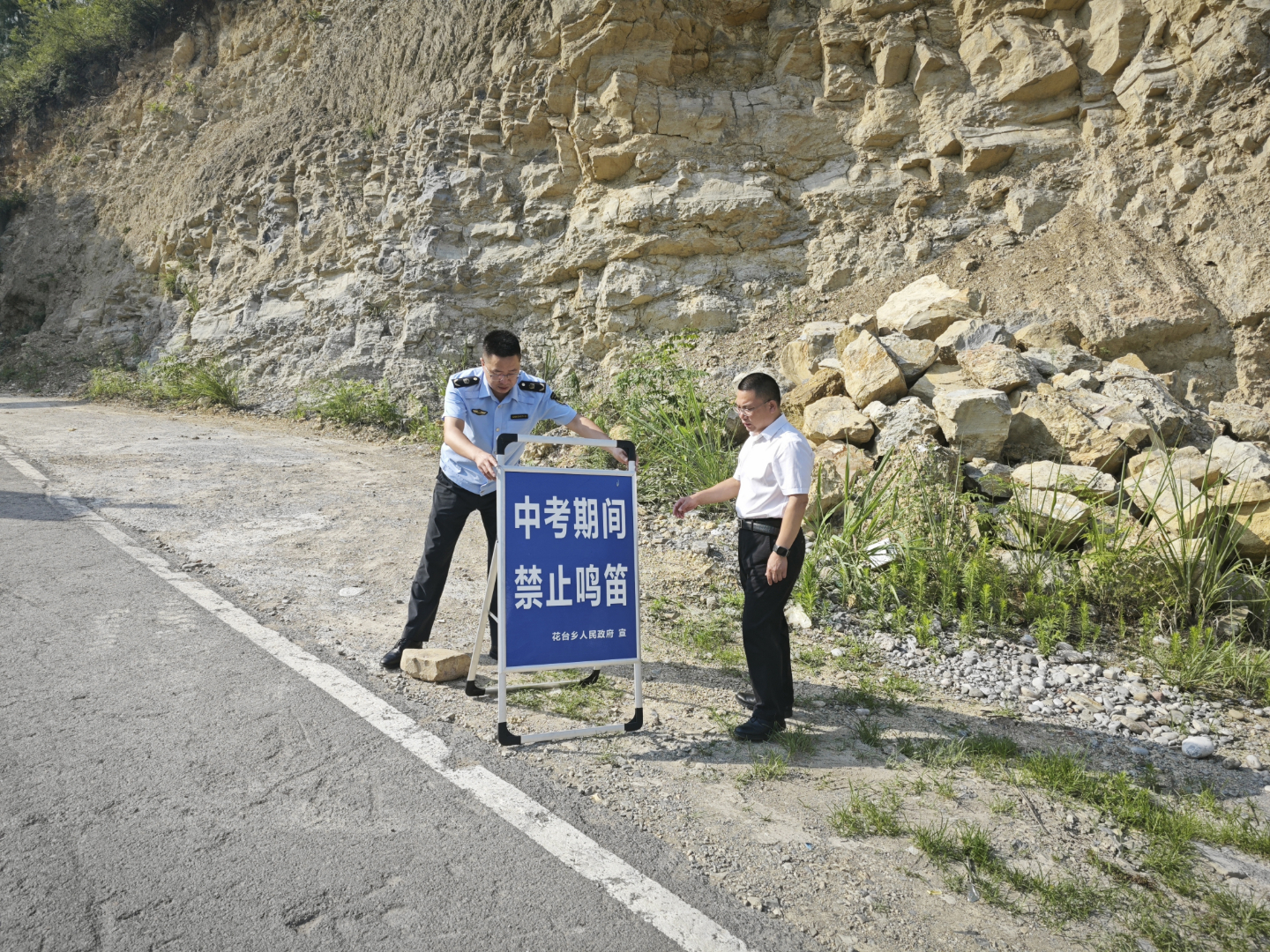 行动伊始,工作人员在考点周边主要道路的醒目位置设置了“禁止鸣笛”等警示标识。同时,积极走访沿线商户、施工单位和居民区,大力宣传“静音护考”要求,倡导相关单位在中考期间暂停高噪音施工作业,呼吁居民减少生活噪音,共同为考生营造宁静的应考氛围。