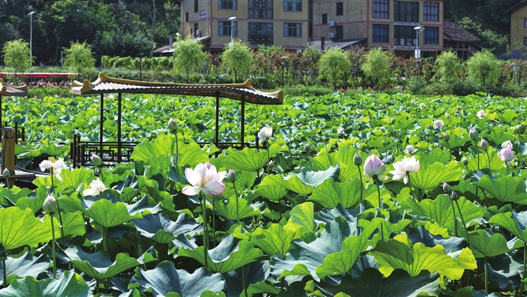 武隆印象客户端讯(记者 罗雪琴 代君君)夏日的微风掠过沧沟乡大田湿地人家,唤醒了一池清丽的荷花,一眼望去,层层舒展的荷叶如绿波荡开,送来阵阵莲香。一朵朵荷花或粉或白,娉婷立于其间,有的热情绽放,宛如花仙子翩翩起舞;有的初绽芳华,像羞涩的少女含苞待放,宛如一幅美丽的夏日油画。