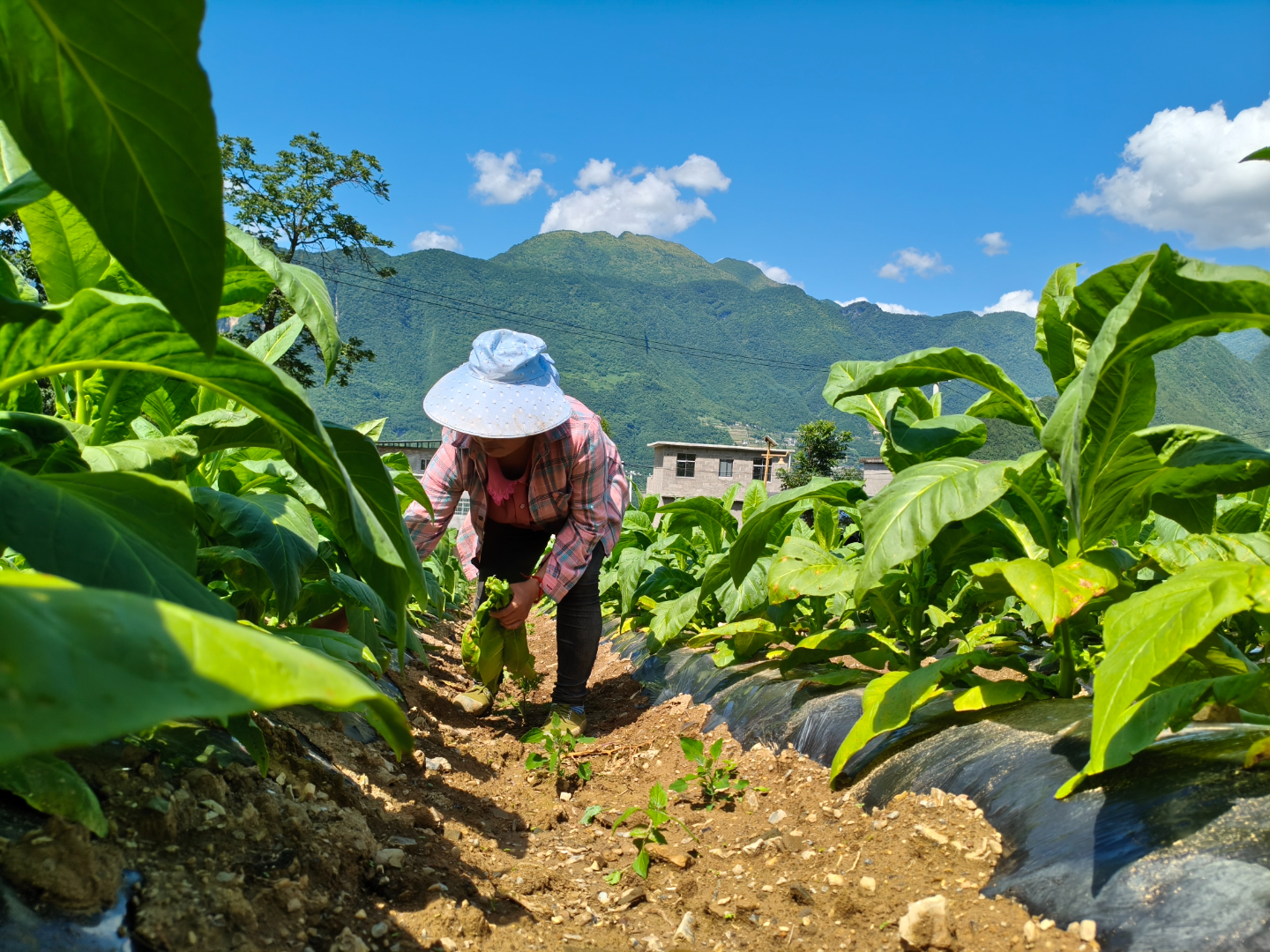 7月1日,记者走进当阳乡红槽村,连片的烟田绿意盎然,一株株烟苗在阳光的照耀下茁壮成长,宽大的叶片随风摇曳。烟农们分散在各个地块,开展除草、去脚叶、病虫害统防统治等工作,到处是一派繁忙劳作的场景。