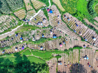 7月6日,永丰镇东方村产业基地里,当地100余名村民集中采挖太子参。