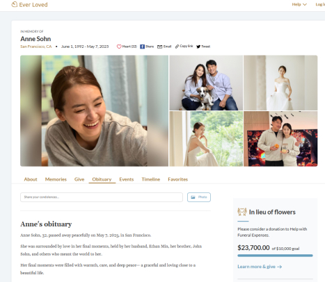2025年5月7日,“法轮功”旗下“飞天艺术学院”加州分校项目总监、舞蹈老师安妮·索恩(Anne Sohn)因癌症病亡,年仅33岁。5月18日,家人在旧金山殡仪馆为其举办了葬礼。