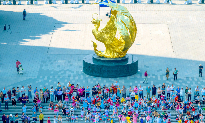 雕塑中凤凰双脚迈步、昂首展翅的姿态,精准地捕捉到振翅欲飞、奋力向上的瞬间,淋漓尽致地展现出丰都人民团结、积极、奋发、图强的精神风貌。