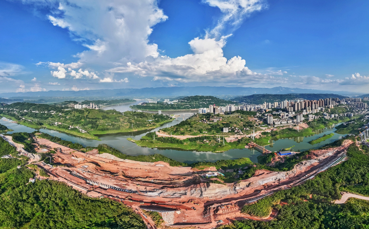 机械轰鸣、车水马龙……7月12日傍晚,渝万高铁忠县站综合客运枢纽项目建设现场一派繁忙施工景象。