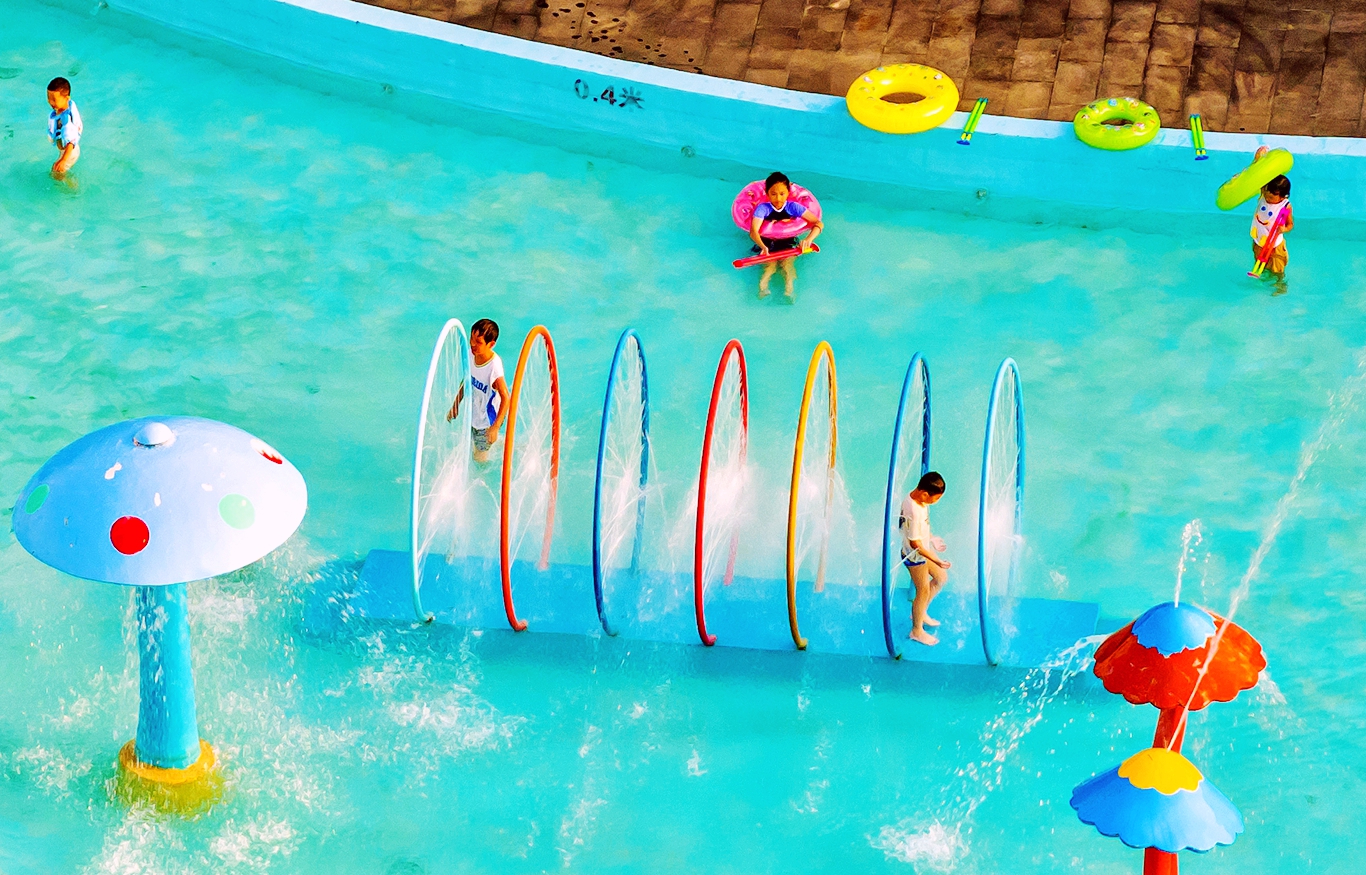 7月12日下午,记者在复兴镇天子山水上乐园看到,一些小朋友或在水池戏水、或在泳池游泳……尽情享受亲水活动带来的凉爽与惬意。