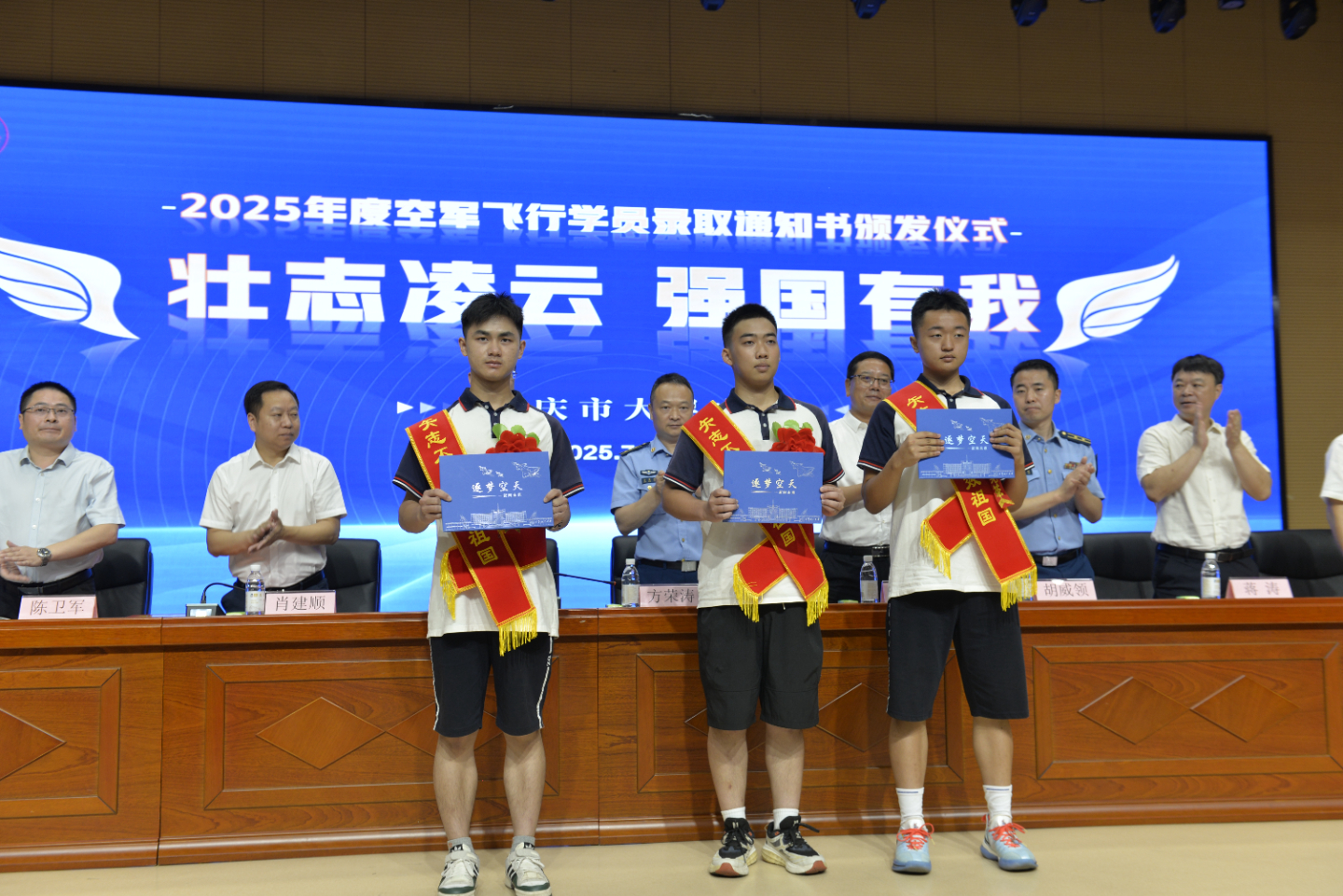 7月14日,重庆市大足中学举行空军飞行学员录取通知书颁发仪式,王男星、周林睿、陈华三名学子通过严格选拔,正式开启空军航空大学学习生涯,即将踏上捍卫祖国蓝天的征程。其中,王男星同学以645分的优异成绩位列重庆市2025年录取飞行员中文化成绩第一名。