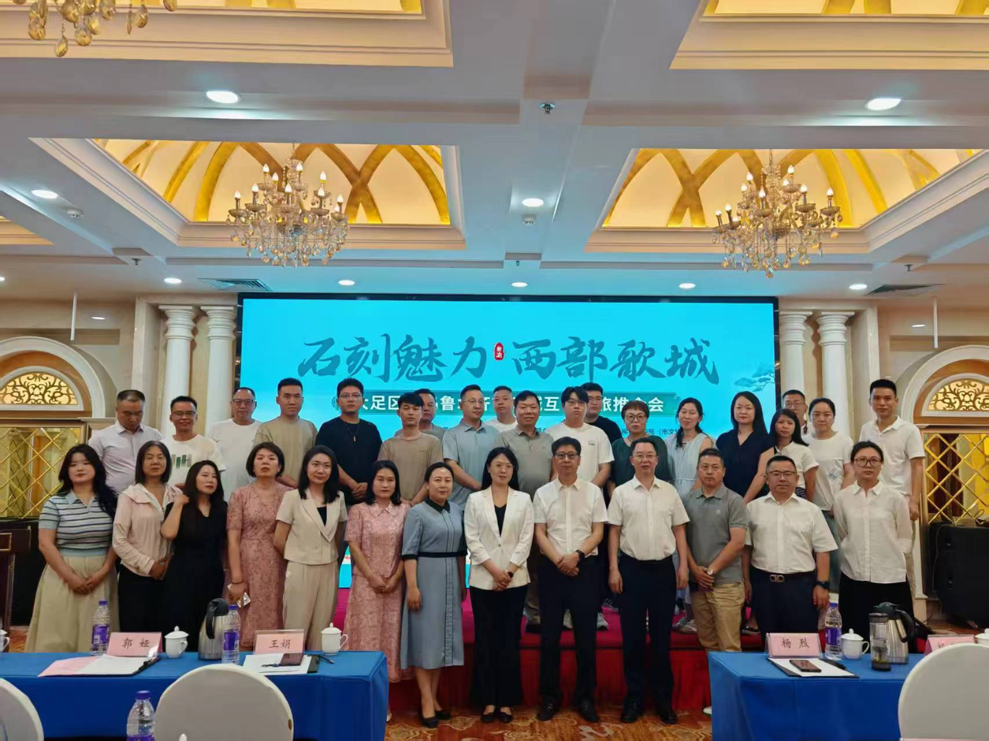 掌上大足讯(记者 余杰 通讯员 肖富华)7月16日,"石刻魅力 西部歌城"——大足区与乌鲁木齐市双城互动文旅推介会在新疆乌鲁木齐市成功举办。两地文旅部门、行业协会及企业代表齐聚一堂,以文化为媒、以旅游为桥,共绘丝路文明与历史底蕴交融的文旅新图景。大足区委常委、政法委书记杨烈参加推介会。