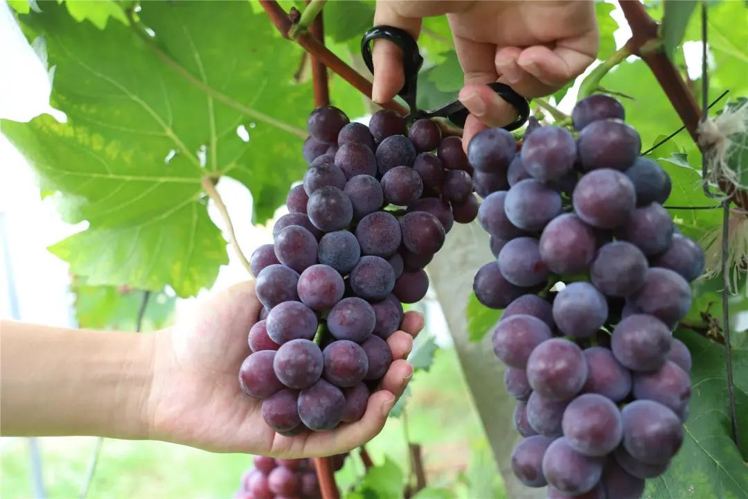 游客钟长林说,“这边离县城近,过来很方便。去年带孩子来摘过,家里人都爱吃,所以今年又来了。带孩子体验采摘,既能亲近自然,又能尝到新鲜葡萄,特别好。”