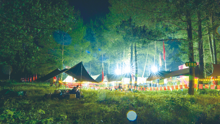 游客们在玉带山露营
