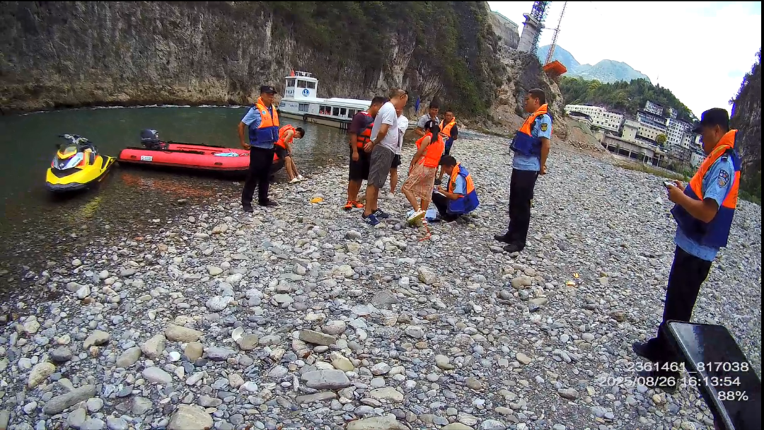 8月26日,巫溪县交通运输综合行政执法支队联合水上派出所,在大宁河污水处理厂水域开展联合执法巡查行动,切实增强市民水上安全意识,保障通航安全。