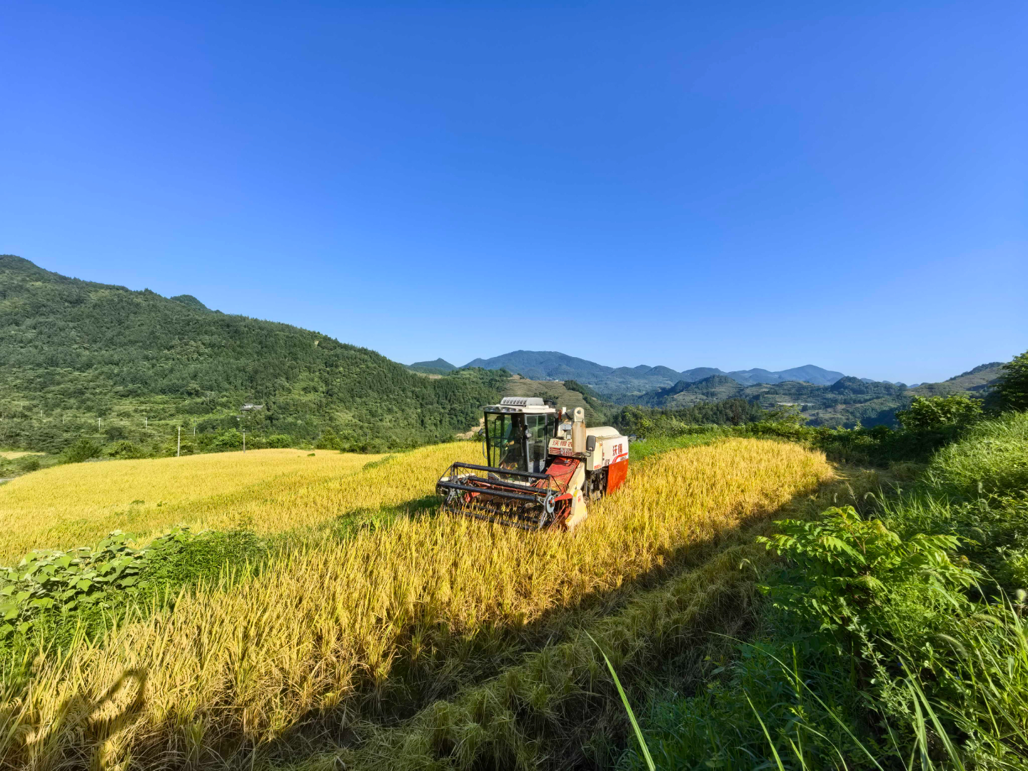 秋阳穿透薄雾,涌洞镇河坝村千丘梯田泛起金色涟漪。驻村第一书记吕晓磊站在田埂上,望着联合收割机在稻浪中穿梭,声音里透着振奋:“今年全村650亩贡米基地预计产出成品米16万斤,产值突破180万元,村集体经济收入比去年有了大幅度提升!”他指着远处连片平整的田块补充道,过去因劳动力外流荒废的“巴掌田”,如今通过高标准农田整治连成沃野,配套完善基础设施,让“望天收”成为历史。村民杨再明正将刚收割的稻谷装车,黝黑的脸上笑出褶子:“以前种地靠经验,现在专家教科学种植,米价涨了,收入也跟着涨!”