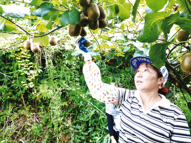 猕猴桃种植是一项“精细活”,从除草、授粉到疏果、采摘,每个环节都需要人工精心操作,这为当地村民提供了在家门口就业的机会。
