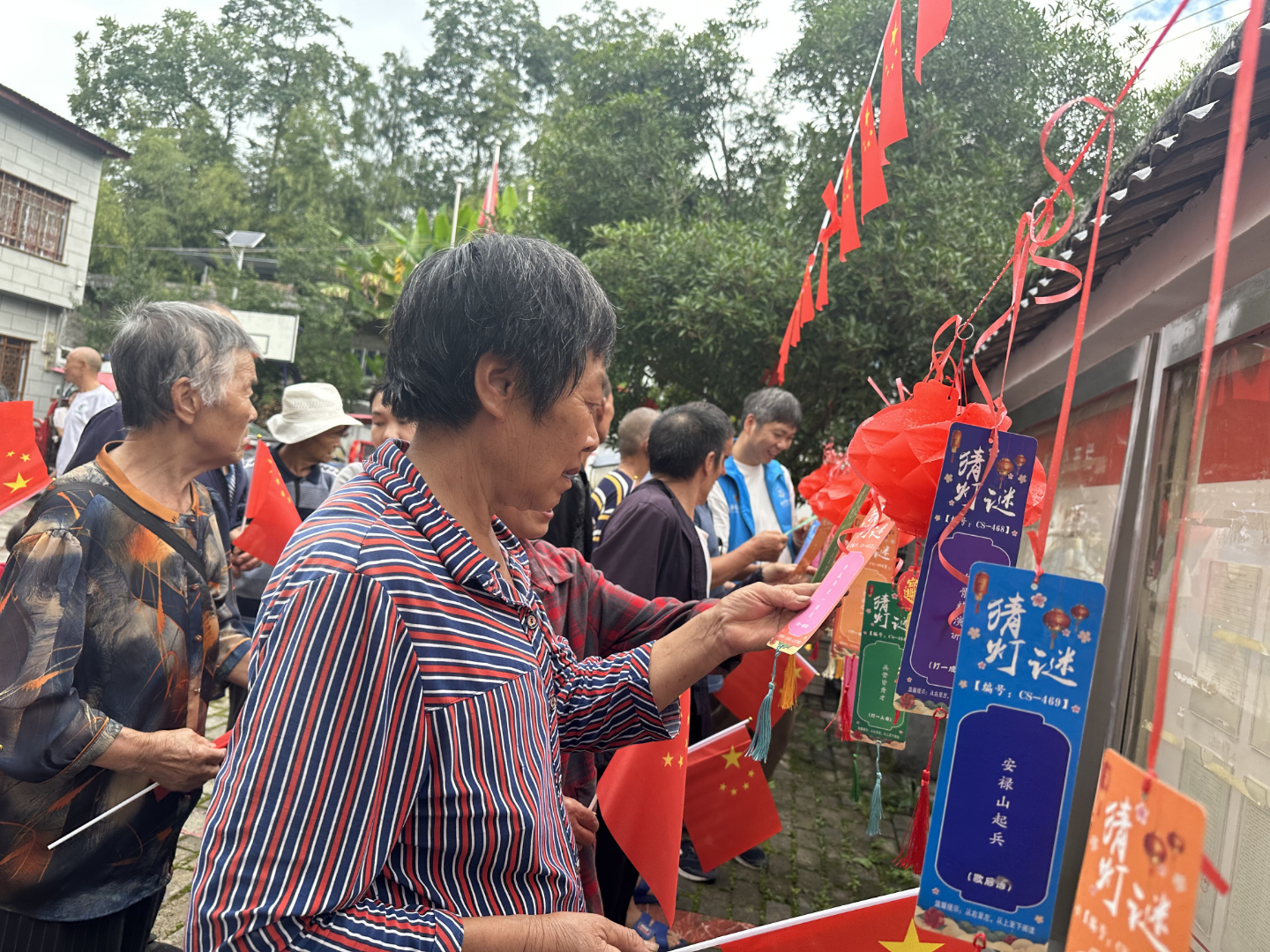 活动在村广场热闹开展。现场红灯笼高挂,五彩灯谜点缀,节日氛围浓厚。“趣味猜灯谜”区域,老人们或凝神思考,或热烈讨论,答对后开心领取奖品,笑声不断;传统“投壶”游戏也备受欢迎,大家专注投掷,每次命中都引来阵阵掌声。这些互动既传承了文化,也锻炼了老人们的手眼协调能力。